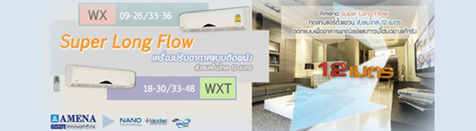 - พิเศษส่งลมได้ไกล 12 เมตร เหมาะสำหรับห้องขนาดใหญ่ ที่มีความกว้างและลึกมาก ๆ (เฉพาะรุ่น WXT33-WXT48)